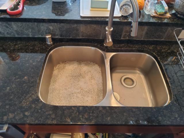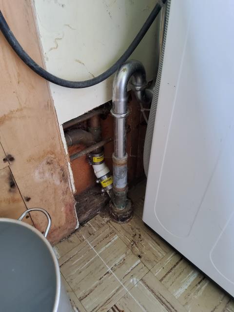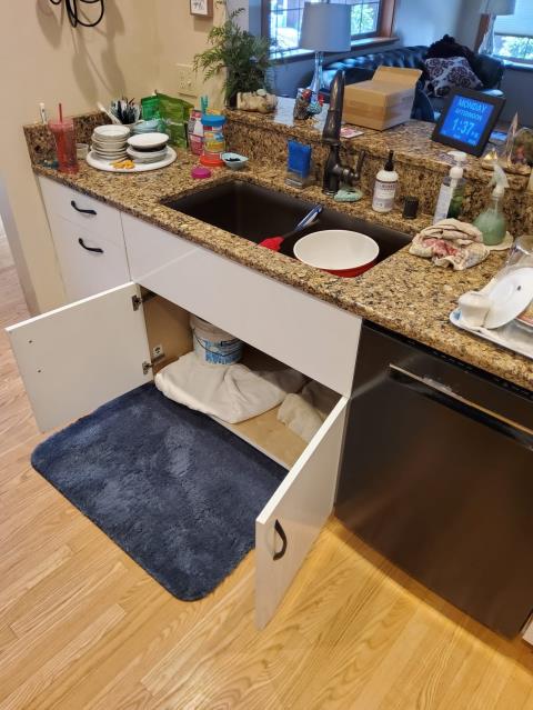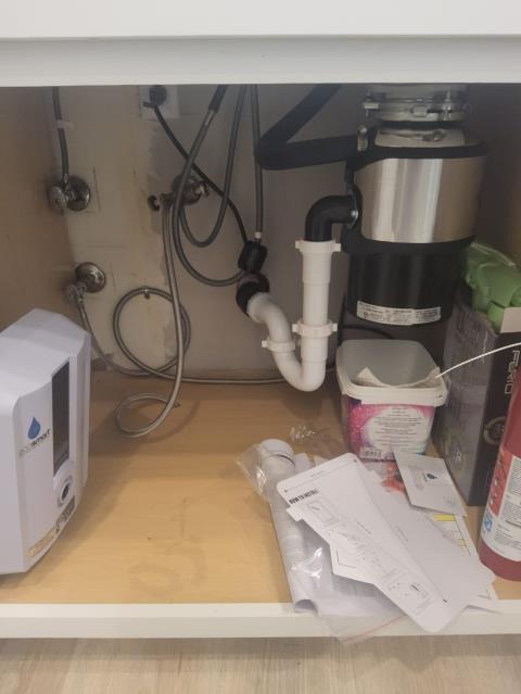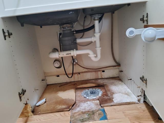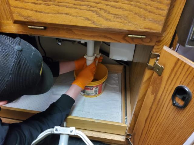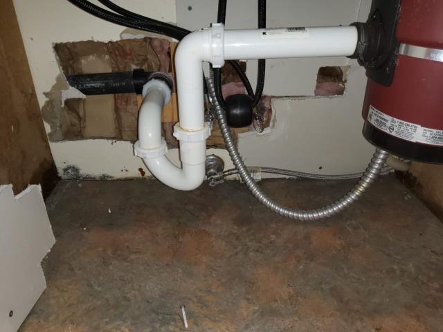 Water leak repair. Kitchen repipe and new garbage disposal installation