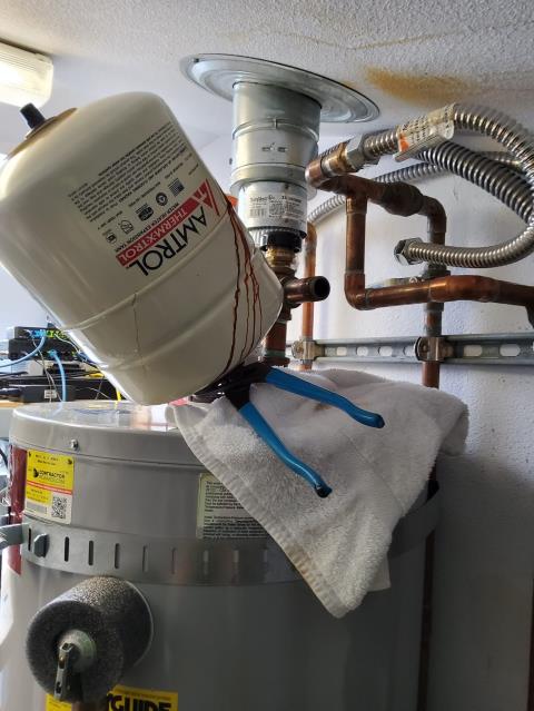 Workign on a Gas water heater expansion tank failure- 10 years old! Call us today for emergency calls today!