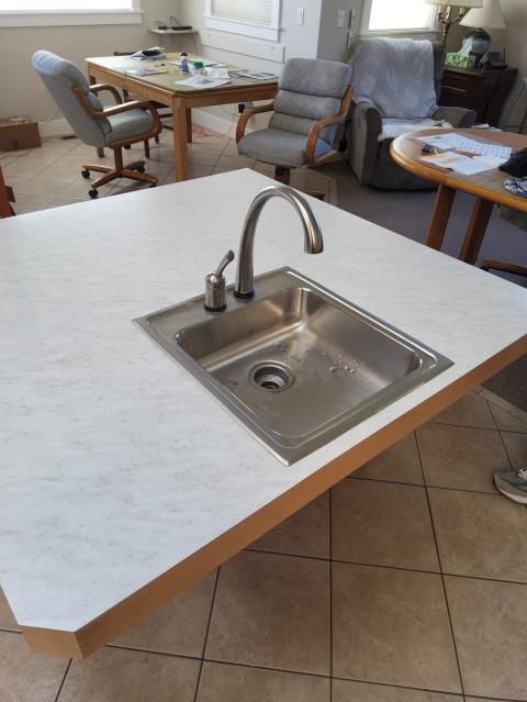 Kitchen updated with new kitchen sink hook up and complete plumbing!