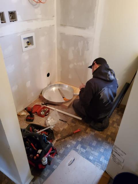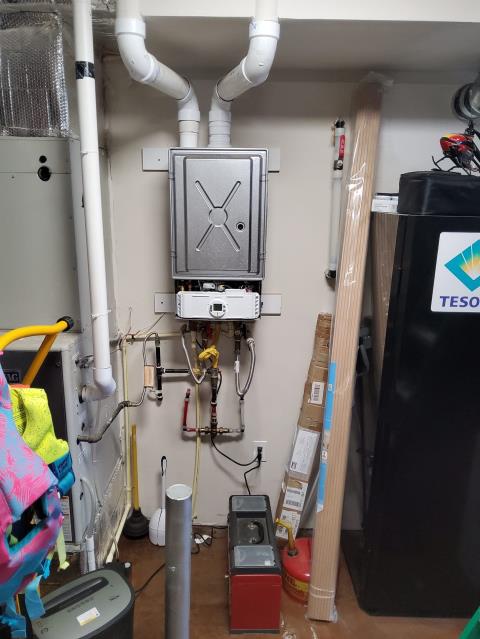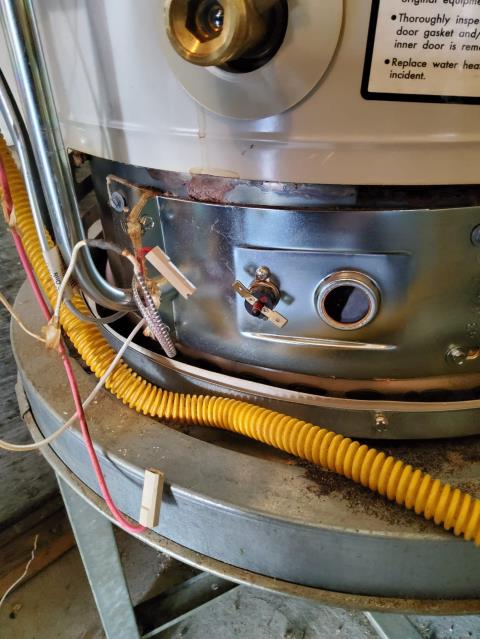 Relocating and installing a water heater that burst with a new customer supplied low boy.