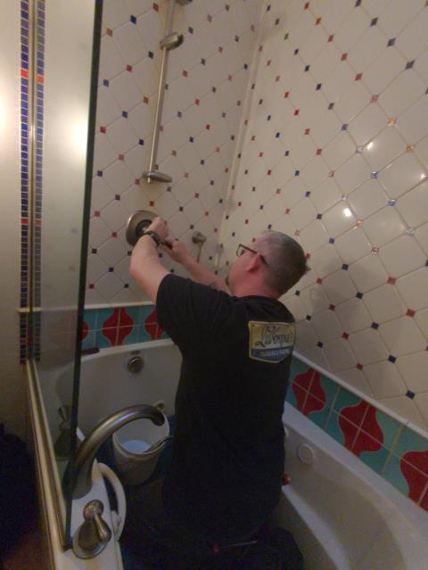 Shower leak work. Call us today for services, the plumbers near you at LaVergne Plumbing & Heating.