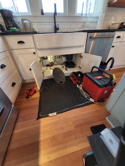I was called to a home to fix a backed-up kitchen drain. I tested the drain with a camera and found that the drain was clogged with grease and hair. I recommended jetting the drain and treating it with a chemical to prevent future clogs. The homeowner agreed to the treatment and I scheduled a date to return and replace the waste lines in the home.
