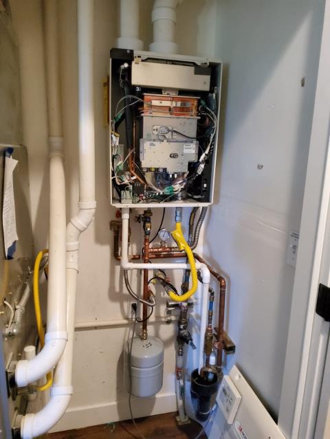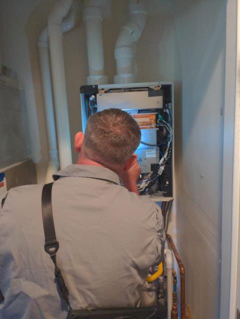 On demand water heater repair. Intermittent hot water and low water pressure repair.
