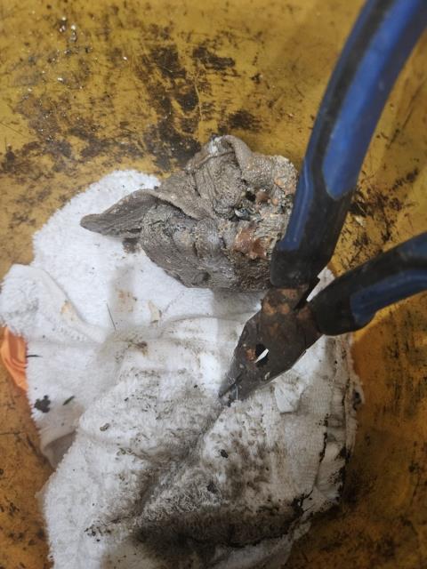 I was called to a home to fix a clogged garbage disposal. I found a rag stuck in the drain, causing a mess. I removed the rag and cleared the clog.